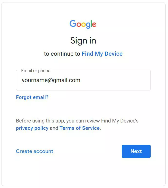 Visite a página do Google Find My Device em seu computador e faça login em sua conta do Google.