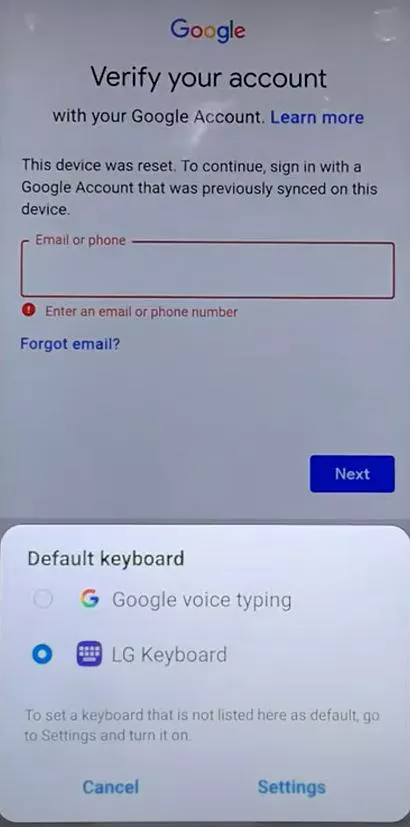 Em qualquer caso, primeiro você precisará verificar as credenciais da Conta do Google sincronizada pela última vez no dispositivo em que você fez uma redefinição de fábrica. Sem essas informações, você ficará preso no estágio de bypass do LG FRP até verificar os detalhes da conta do Google ou encontrar outro método.