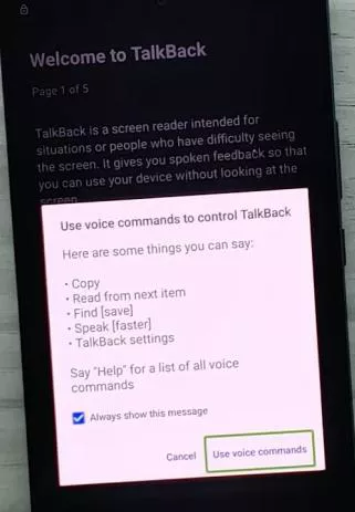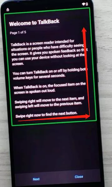 Agora desative o Talkback pressionando e mantendo pressionadas as teclas de volume para cima e para baixo por 3 segundos.