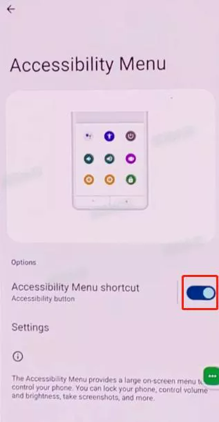 Role para baixo até a opção "Acessibilidade" e ative o "Menu de Atalho de Acessibilidade". Um pop aparecerá na tela; selecione Permitir.