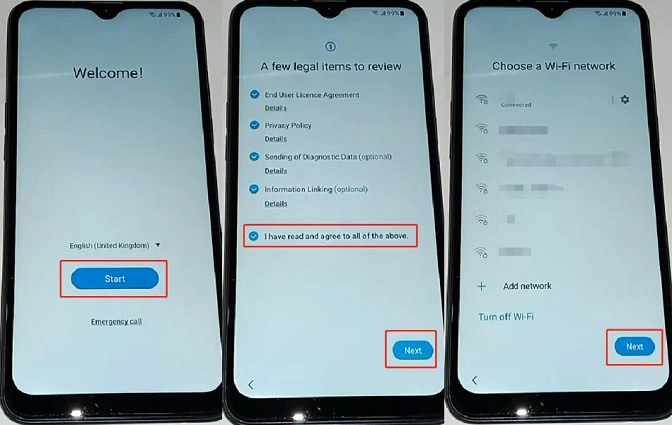 O processo de bypass FRP pode levar alguns minutos para ser concluído, e quando terminar, o seu Samsung A01 reiniciará imediatamente e você poderá configurá-lo como novo seguindo as instruções na tela.