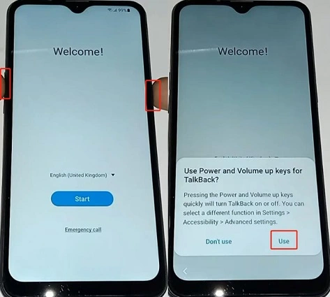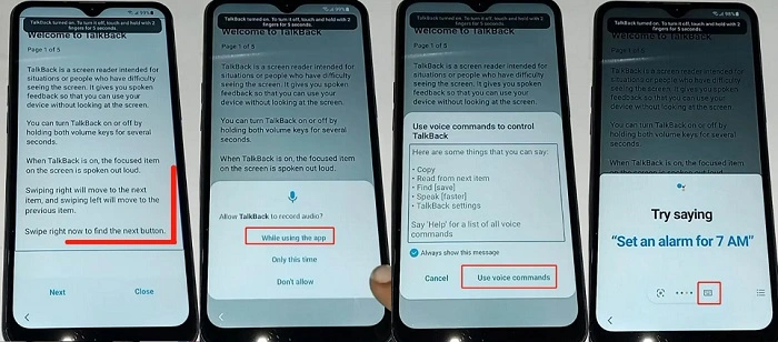 Aqui está outro método passo a passo para realizar o bypass do FRP no Samsung A01 usando o Talkback. Siga cada etapa com precisão para uma conclusão bem-sucedida do bypass FRP Samsung A01. Mas você deve observar que o método consome tempo e pode estar sujeito a erros.