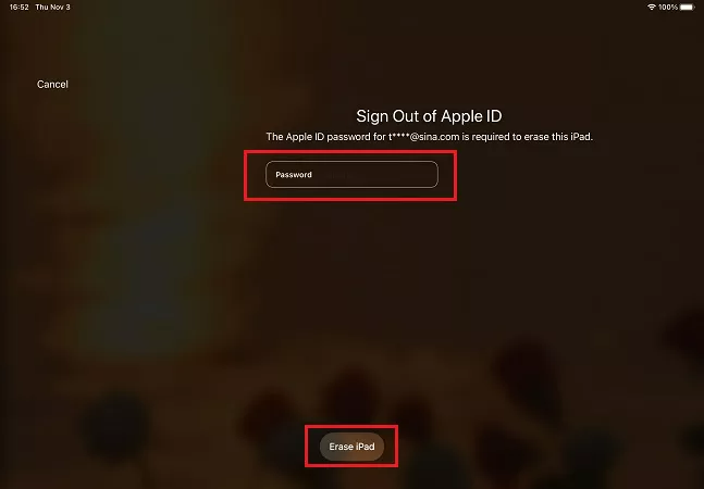 Você será solicitado a inserir o ID e senha da Apple. Depois de fazer isso, seu iPad será redefinido e você poderá configurá-lo novamente.