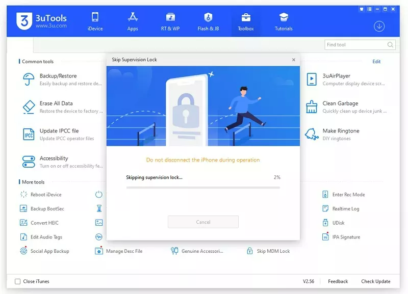 Além de suas funcionalidades principais, o 3uTools também possui a capacidade de bypassar o bloqueio MDM, que é o foco deste artigo. A opção "Pular Bloqueio MDM" no 3uTools permite ignorar rapidamente a supervisão imposta a iPhones ou iPads por administradores.