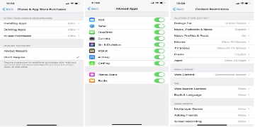 Em seguida, toque em Compras do iTunes e App Store e veja se elas são permitidas ou não.