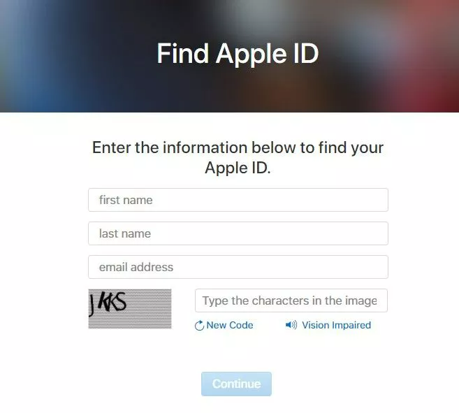 - Depois de visitar o site da Apple, escreva seu primeiro nome, sobrenome e endereço de e-mail. Depois de escrever seus detalhes, você precisará clicar no botão Continuar.