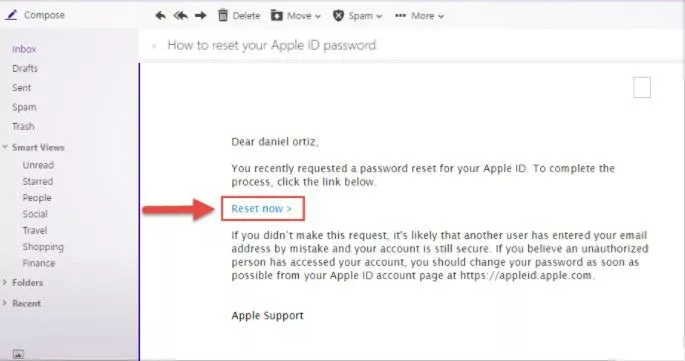 - No seu e-mail, clique em Redefinir agora.