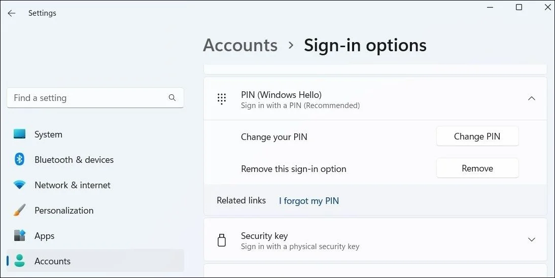 Embora o método acima permita alterar o PIN da conta em algumas etapas fáceis, talvez você não consiga usá-lo se não se lembrar do PIN atual. Felizmente, o Windows oferece a opção de alterar o PIN do seu computador a partir da tela de entrada também.