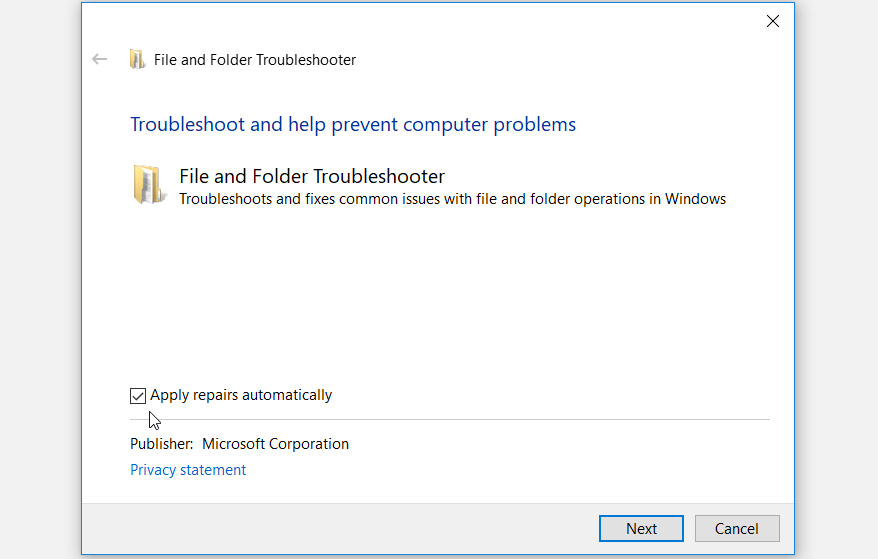 Agora, não vamos dar uma olhada em como você pode executar a Solução de Problemas de Arquivos e Pastas da Microsoft: