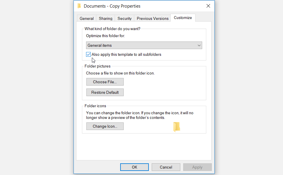 - Marque a caixa Também aplicar este modelo a todas as subpastas.
